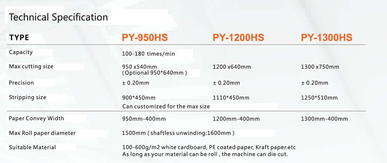 DAKIOU PY-S Bobin halinde gelen hammaddeyi kullanılan bıçağın ölçüsü doğrultusunda kesim makinesidir. Çeşitli sigara kutuları, ilaç kılıfı, zarflar, kağıt bardak, kağıt kase, hediye çantaları ve çeşitli kağıt ürünlerinin kırılması, kalıp kesmesi için uygundur. Full ayıklamalı kesim makinesidir.